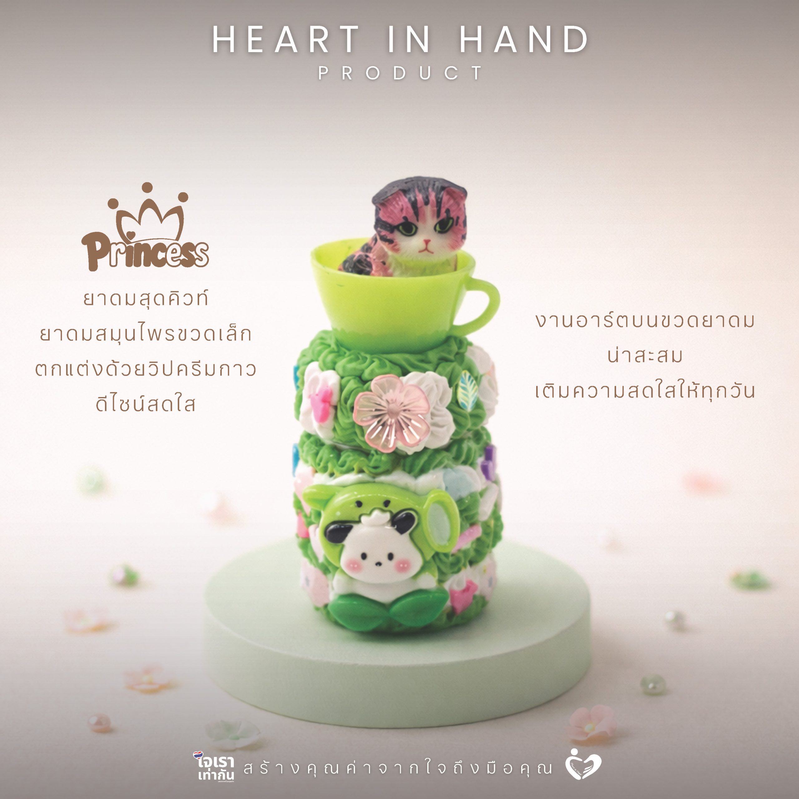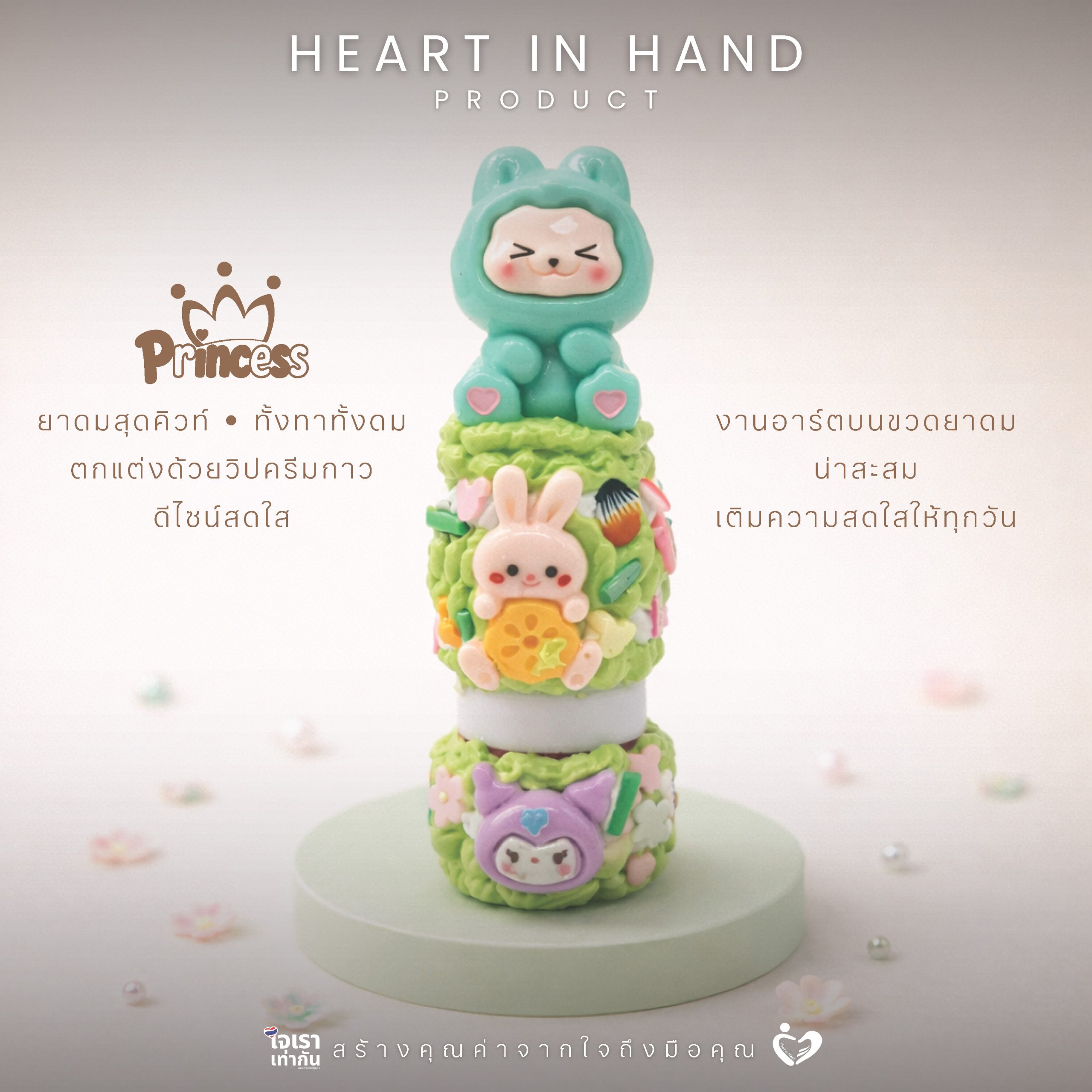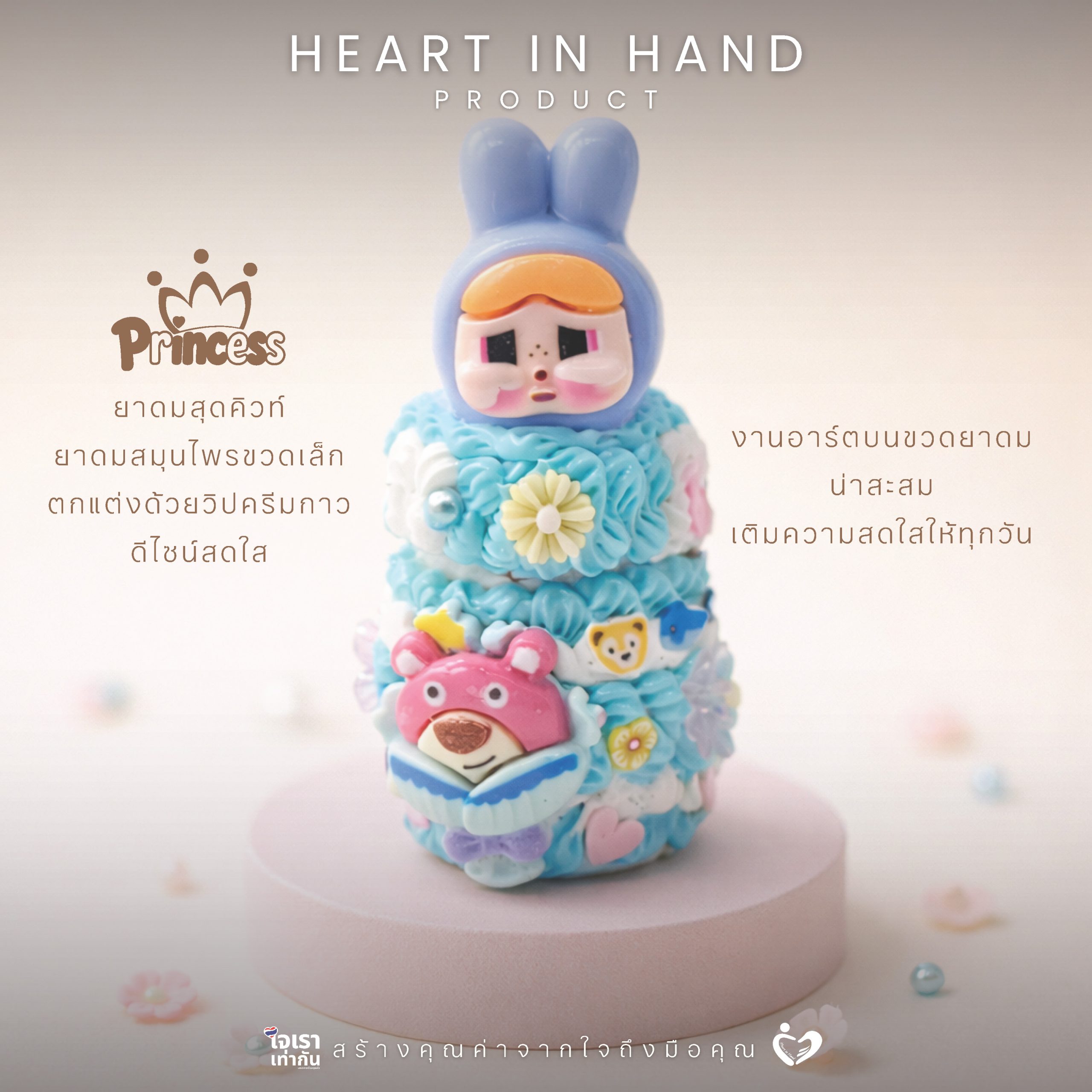 ยาดมสมุนไพรขวดเล็ก ตกแต่งด้วยวิปครีมกาว | Heart in Hand Product Princess Wheelchair
